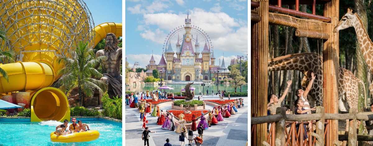 纜車全長約7,900公尺,是全世界最長跨海纜車!纜車的起點就在日落小鎮,從空中望去,造鎮的規模真的讓人嘆為觀止,充滿異國風情的浪漫氛圍超好拍。還有富國島上最大的水上樂園 - Sun World 香島樂園!豐富多樣的戲水設施,大小朋友都能盡興玩樂,刺激連連的人造浪、惹眼奪目的滑水道、夢幻般的漂漂河,給您一場難忘的夏日體驗!